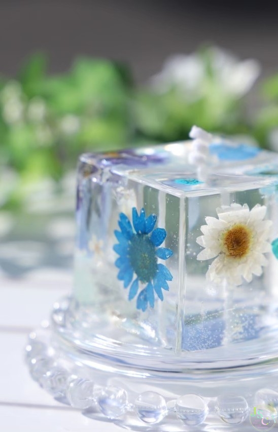 柔らかめのワックス「ジェルワックス」と器を使用する“浮遊感を持たせながら装飾をとじ込めるキャンドル作り”を学ぶことができる講座です。